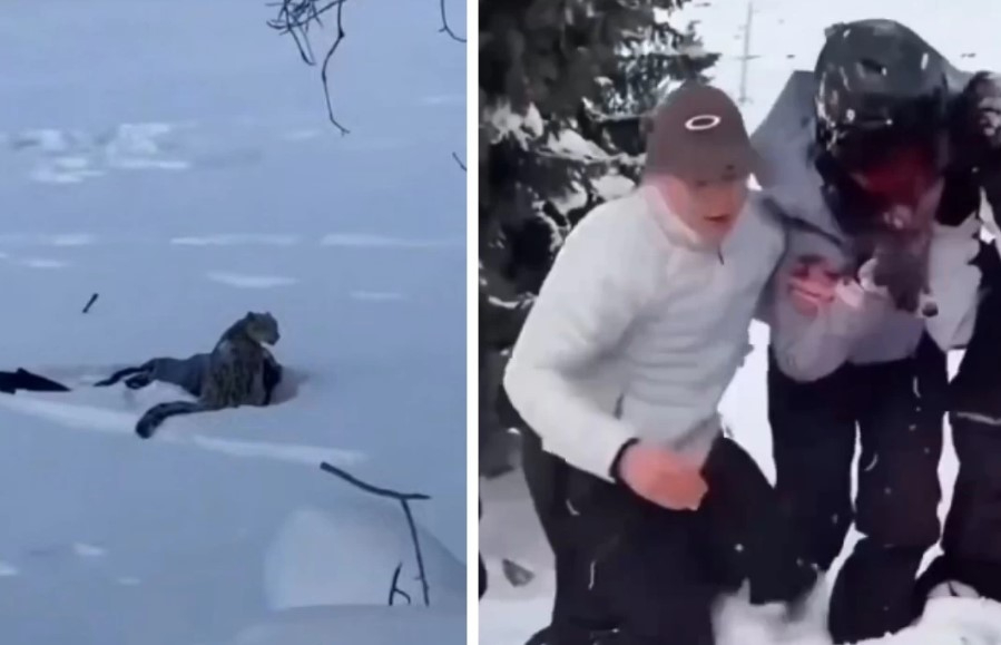 Әйелді қар барысының шабуылынан басындағы шлем қорғап қалған. Нұсқаушы шаңғы таяқтарымен жыртқышты үркіткеннен кейін ғана шабуыл тоқтаған.