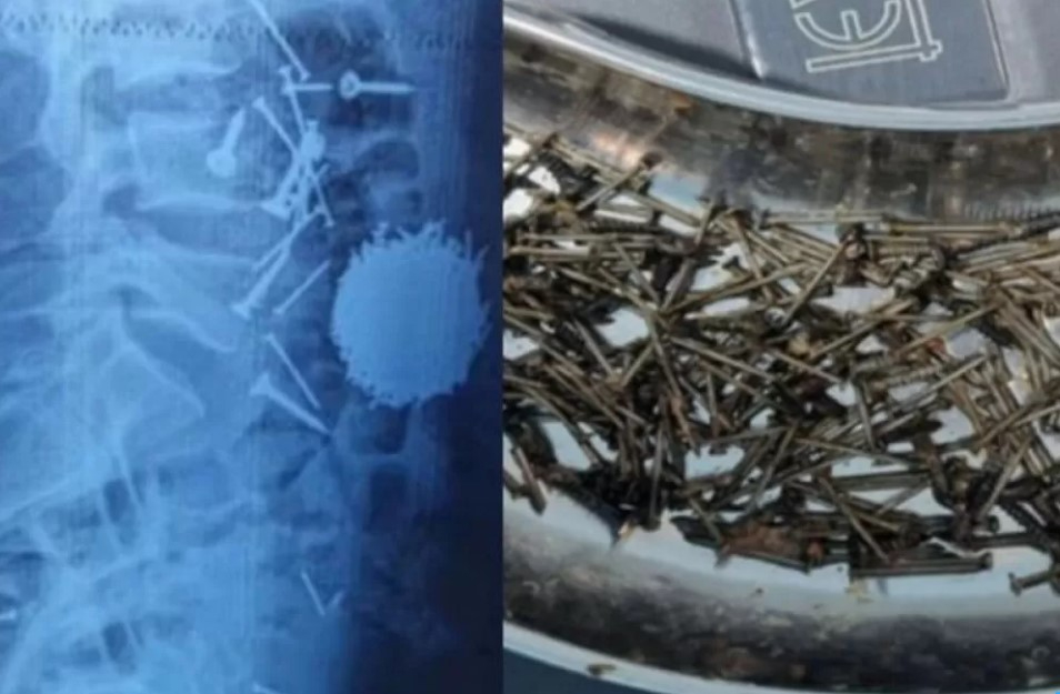Жүргізілген диагностикалық тексерулер мен зертханалық талдаулар науқастың асқазан-ішек жолында бөгде заттар бар екенін көрсетті. Атап айтқанда, шегелер мен бұрандалар болған. Науқасқа шұғыл түрде ота жасалып, іш қуысынан металл заттар алынып тасталды.
