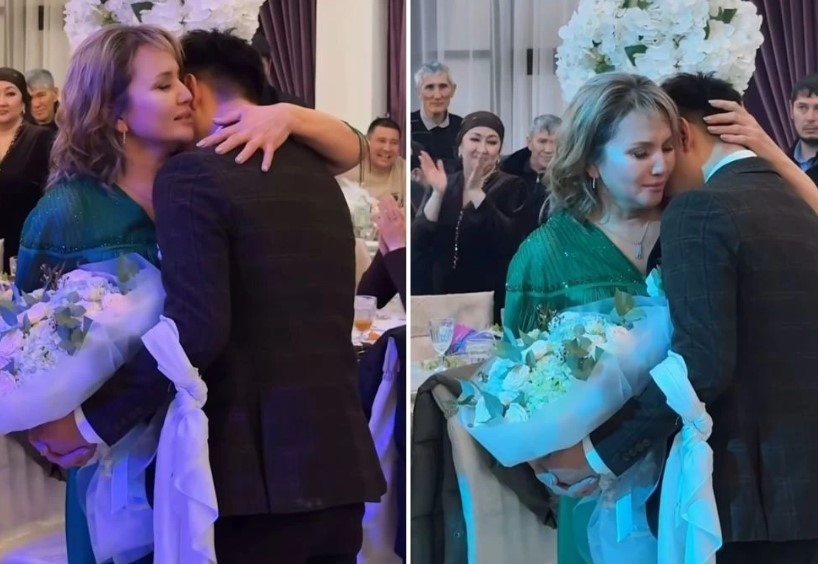 Кадрлардан күйеужігіт анасын құшақтап тұрып жылап жатқаны көрінеді.