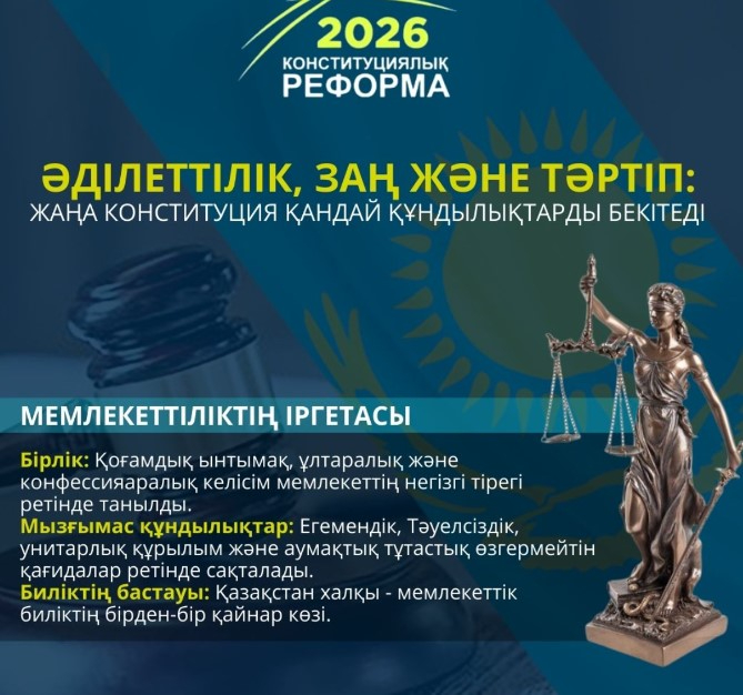 ERNUR.KZ. 2026 жылғы Конституциялық реформа – Қазақстанның құқықтық және қоғамдық дамуындағы маңызды кезең. Жаңа Конституция әділеттілік, заң үстемдігі мен тәртіпті басты қағидаттар ретінде айқындап, мемлекеттің әрі қарайғы дамуына берік негіз қалайды.