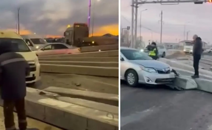 ERNUR.KZ. Атырау облысындағы тасжолда жүк көлігінің тіркемесінен бетон тіреулер құлап, салдарынан үш автокөлікке шығын келді, деп жазады azattyq-ruhy.kz.