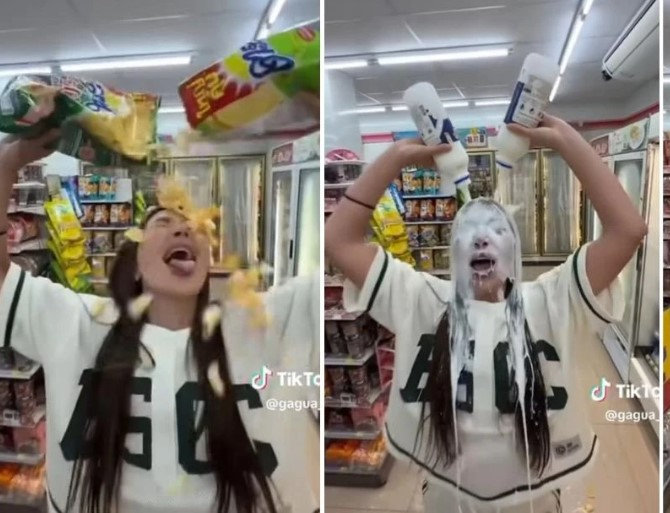 Блогер “7-Eleven” дүкеніне барып, үстіне чипстерді шашып, сүтті коктейль құяды да, дүкен ішінде жүгіріп “Осындай дүкендер желісін Қазақстанда ашуды талап етемін” деп айғайлайды.