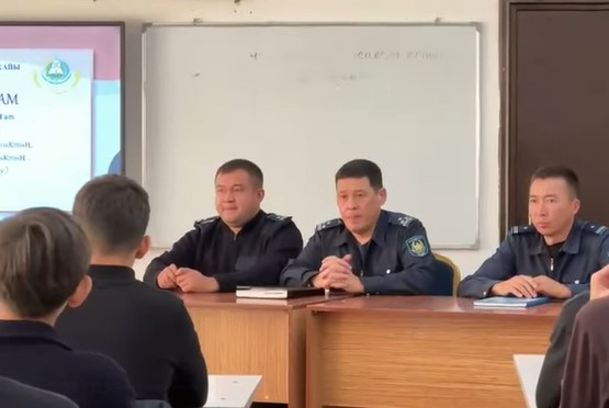 “Заң және тәртіп” қағидаты аясында қалалық полиция департаментінің қызметкерлері Т.Рысқұлов атындағы №25 мектеп-гимназияда жоғары сынып оқушыларымен құқықтық тәрбие сағатын өткізді.