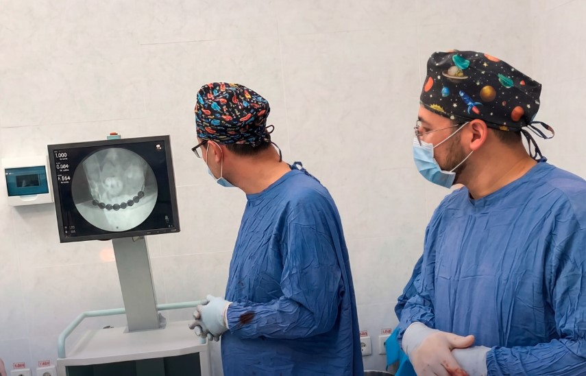 Ота кезінде тыртық тіндер алынып, сүйектер анатомиялық қалыпқа келтірілді, металл пластина мен бұрандалар арқылы берік бекітілді.