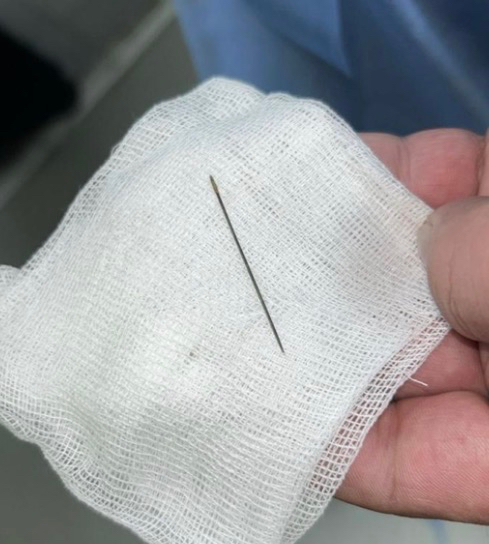 Түркістан қалалық орталық ауруханасының жұқпалы аурулар бөліміне қызылшаға күдікпен 8 айлық сәби жеткізілді. Тексеру барысында жүргізілген рентгенологиялық зерттеу нәтижесінде баланың іш қуысынан бөгде зат — ине анықталды.