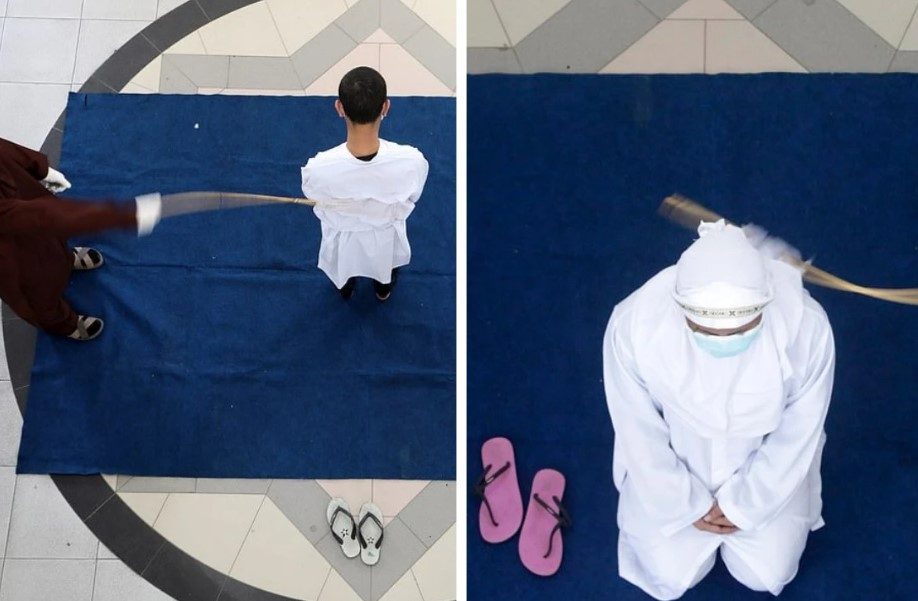 Көпшілік алдында жазалау 7 сәуірде Ачех провинциясындағы қалалық саябақта өтті. Оларға ротанг таяқшасымен 100 рет дүре соғылды.