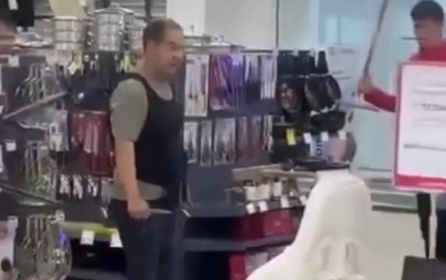 Видеодан оның мас немесе өз-өзіне ие емес күйде болып, сатушыларға қорқыту әрекетін жасап, тіпті бір сәтке пышақты өз мойнына тақап тұрғанын байқауға болады. Қауіпсіздікті қамтамасыз ету үшін дүкен қызметкерлері қолда бар заттарды – еден жуғыш құрал (швабра) мен орындықтарды пайдаланып, құқықбұзушыны есік жаққа қарай ығыстырған. Нәтижесінде ол пышақтарды тастағаннан кейін ғана сыртқа шығуына рұқсат берілген. Сол сәттен кейін ер адам оқиға орнынан қашып кеткен.