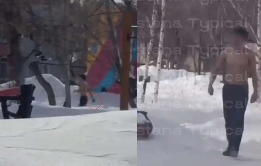 ERNUR.KZ. Желіде тараған видеода Республика мен Достық көшелерінің қиылысында денесін жалаңаштаған ер адам суық қару ұстап, біреуді іздегендей әрекет жасаған, деп жазады azattyq-ruhy.kz.