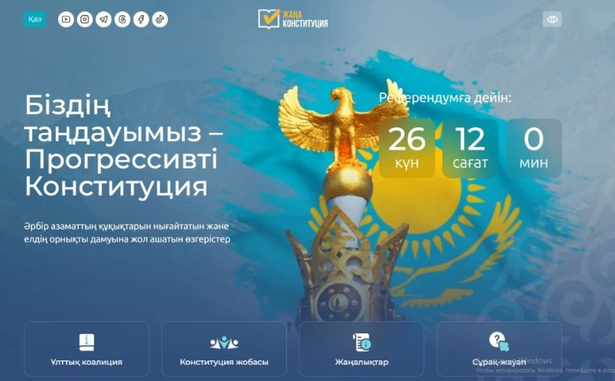 "Әділетті және Прогрессивті Қазақстанның Халықтық Конституциясы үшін" жалпыұлттық коалициясы referendum2026.kz порталын таныстырды. Бұл сайт алдағы өзгерістер туралы ақпарат көзі ретінде құрылған.