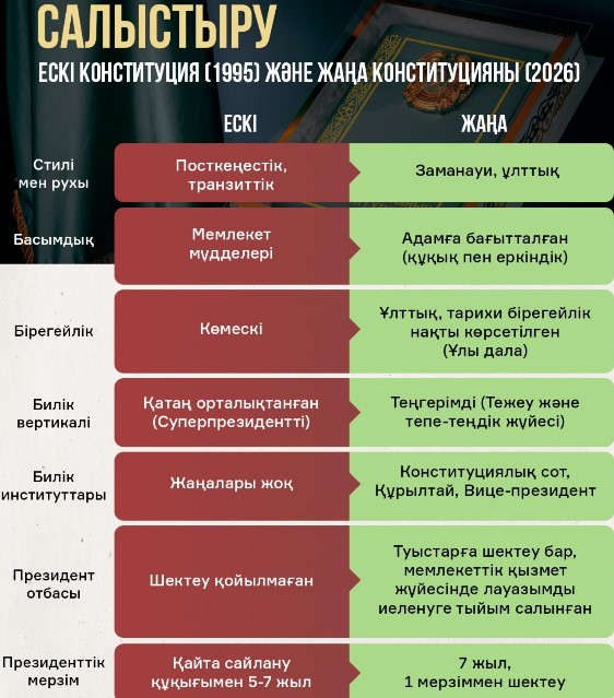 Осылайша, жаңа Конституция елдің тарихи-мәдени құндылықтарын сақтай отырып, басқару жүйесін теңгерімді әрі заманауи стандарттарға сәйкестендіріп отыр.