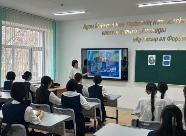 Сынып сағаты барысында білім алушылар жаңа Конституцияның негізгі қағидаттарымен танысып, өз құқықтары мен міндеттері туралы түсініктерін кеңейтті. Сонымен қатар, заңға бағыну мәдениетін қалыптастыру және «Адал азамат» құндылықтарын дәріптеу бағытында түсіндіру жұмыстары жүргізілді.