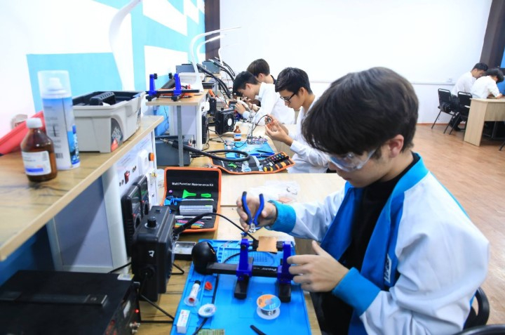 - Робототехника зертханасы – NAO гуманоид роботтары мен WorldSkills стандарттарына сай платформалар арқылы құрастыру және бағдарламалау дағдыларын дамытуға арналған.
