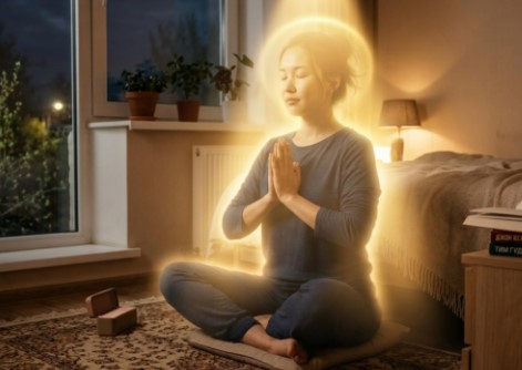 - Осы сәтте сіздің санаңыз ғаламмен үндеседі. Асықпаңыз. Тәніңіздің ғаламмен бірлік күйін сезінуге мүмкіндік беріңіз. Ештеңе сұрамаңыз. Ештеңе ойламаңыз. Назарыңызға тыныс алуға аударсаңыз, ойыңыз сан-саққа жүгірмейді. Ауаны ішке жұтып, сыртқа шығарғанда созып «ом-м-м-м» дыбысын айтыңыз. Бұл вибрация денеңіздегі энергетикалық блоктарды шешуге көмектеседі.